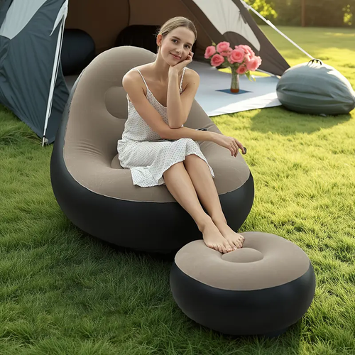 Pump-Inflatable & Foldable Footrest Sofa-Storage PVC Inflatable Single-Person Reclining Sofa with Backrest